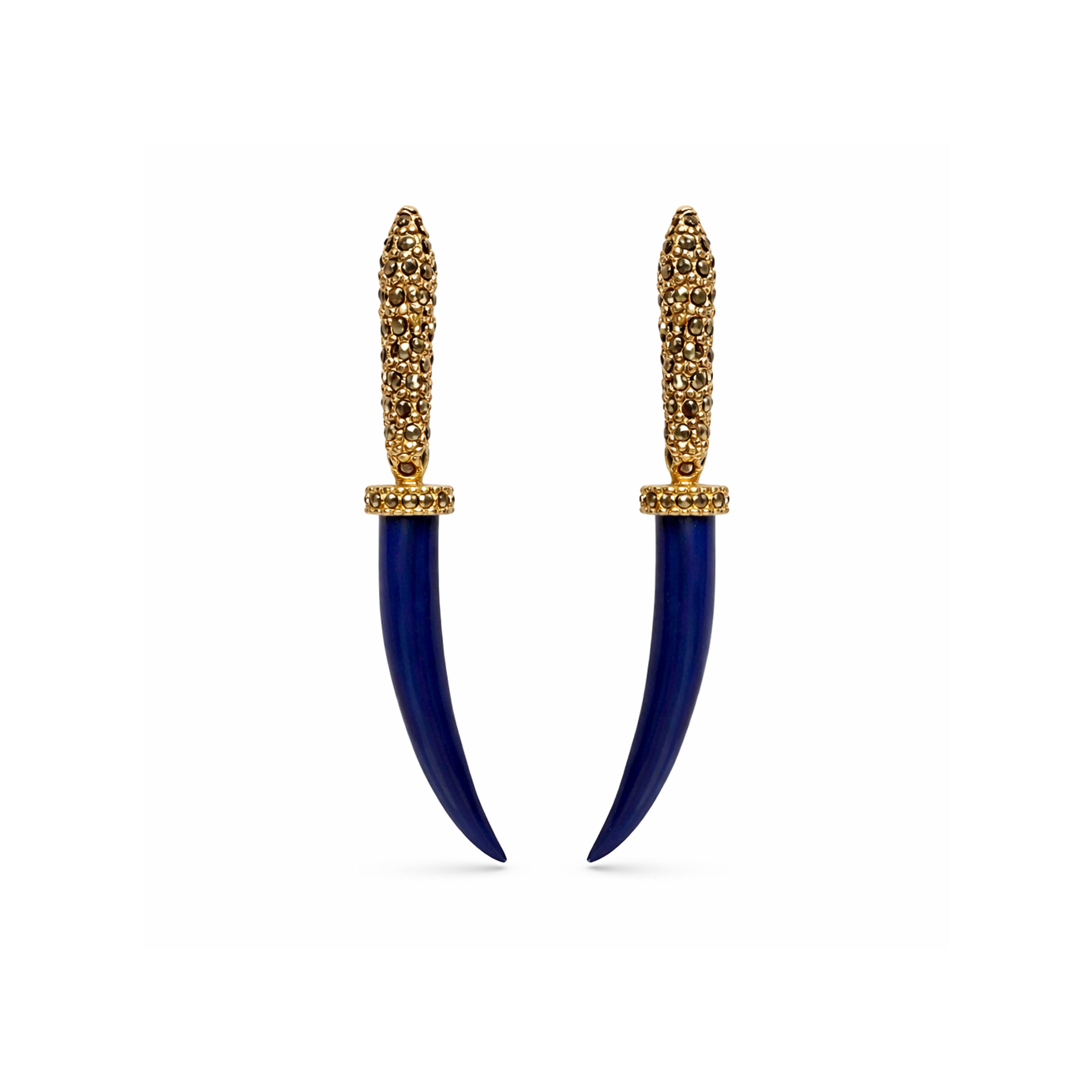 .925 silver earrings with 14K gold plating and blue gold tusk drop.