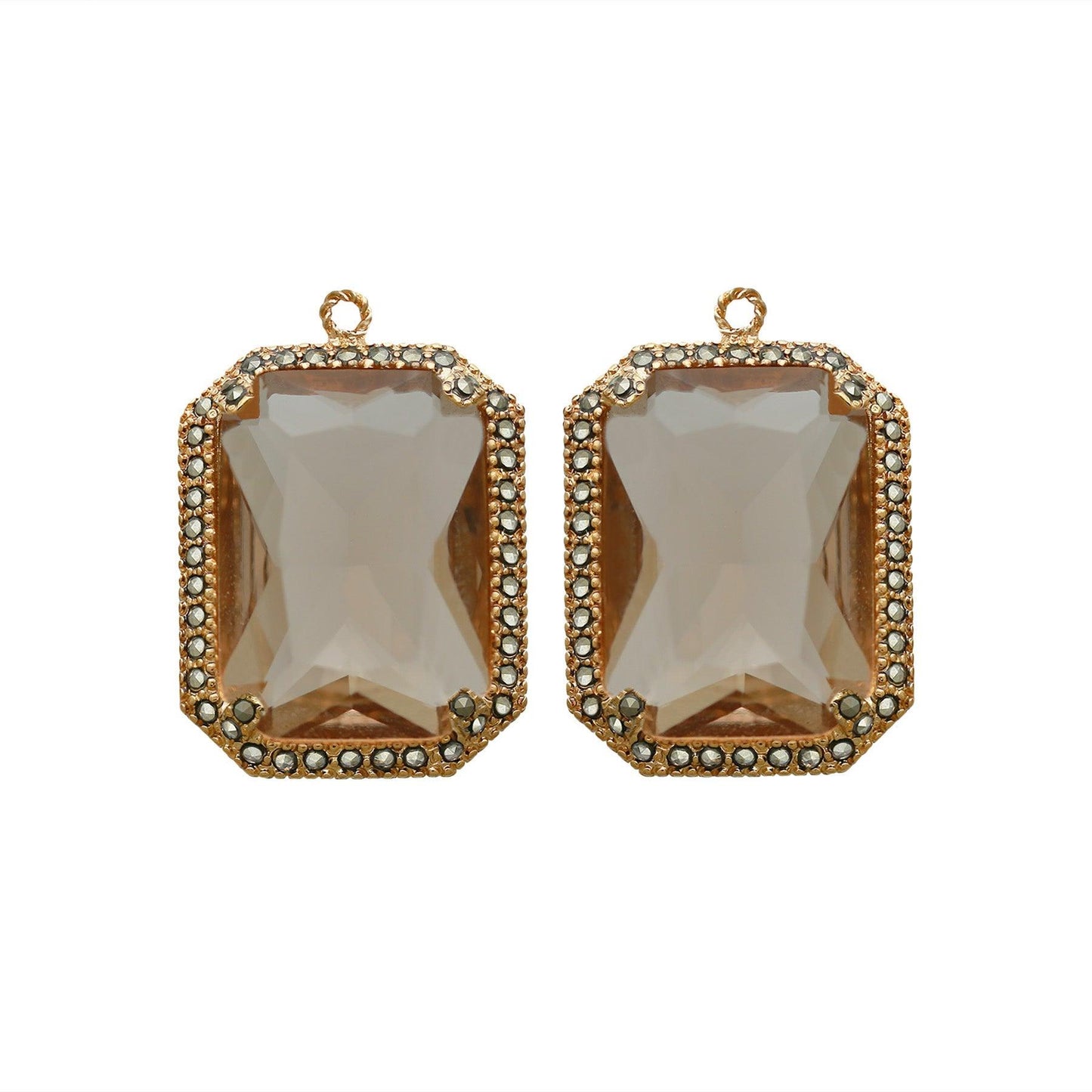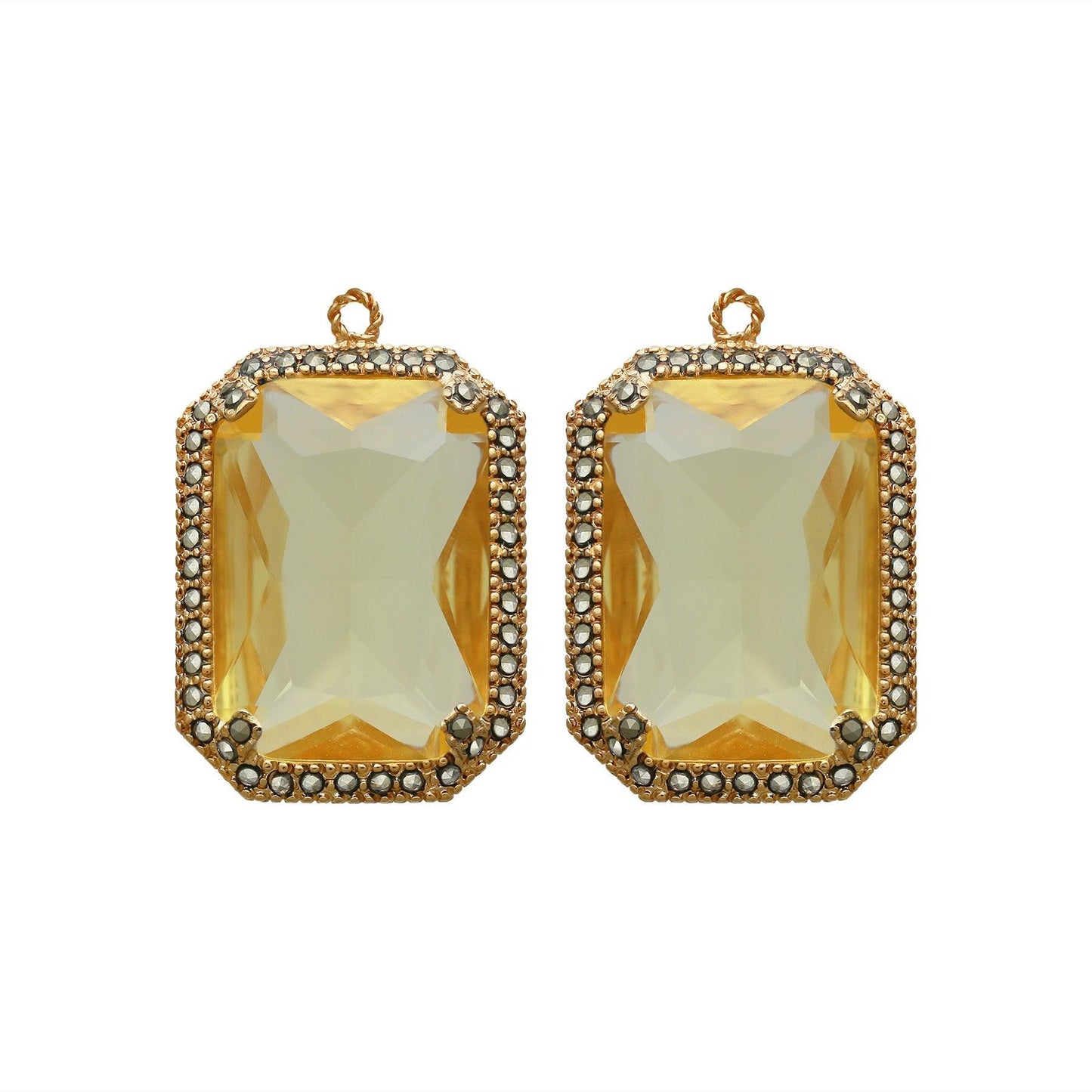 Classic Gold bagette drop in .925 silver with 14K gold plating and pyrite inlay, square faceted crystal.